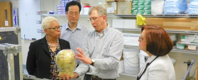 On March 24, 2015, Patricia Worthington, director of DOE Office of Health and Safety (AU-10), Isaf Al-Nabulsi (RERF Program Manager, DOE/AU-10), and Joey Zhou (USTUR Program Manager, DOE/AU-13) visited the USTUR.
