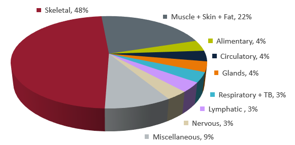 The USTUR receives, preserves, and catalogs a portion of each organ and bone from whole-body donors as well as selected tissue and organ samples from partial-body donors. Currently, the NHRTR holds approximately 9,000 frozen and formalin-fixed tissue samples from 40+ whole- and 100+ partial-body USTUR donors, and approximately 10,000 acid-digested tissue samples. A wide range of tissues is available including samples from the bone, lung, lymph node, liver, kidney, and brain. Click here for a summary of frozen tissues available at the USTUR, organized by the type of tissue.