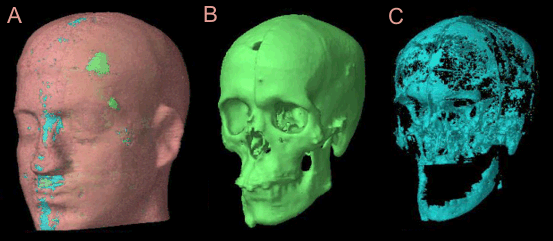 George Tabatadze, M.S., a Ph.D. candidate in the Idaho State University (ISU)/USTUR Internal Dosimetry Research Group, with the help of medical physicists at the Portneuf Medical Center, Pocatello, ID, has successfully created 3-dimensional voxel images of the regions of interest in the DOE Case 0102 241Am head phantom. He used the complete set of contiguous 2-dimensional CT-scan slice (DICOM) images produced during Ms. Deanna Hasenauer’s 2006 practicum study.