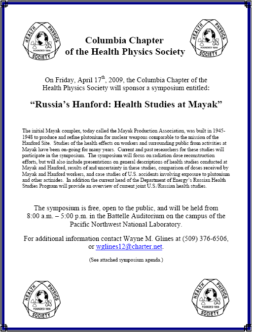 Columbia Chapter of the Health Physics Society (CCHPS) Symposium on “Russia’s Hanford: Health Studies at Mayak”