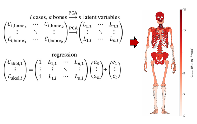 The United States Transuranium and Uranium Registries (USTUR) studies actinide (Pu, Am, and U) biokinetics and tissue dosimetry by following up former nuclear workers with documented internal deposition of these radioactive elements. The USTUR research relies heavily upon postmortem autopsy findings and radiochemical analyses of donated tissues. Plutonium is a radioactive element first produced and isolated in the 1940s. The skeleton is a major plutonium retention site in the human body. The estimation of the total plutonium activity in the skeleton is a challenging problem. For most tissue donors at the USTUR, a limited number of bone samples is available. Typically, the total skeleton activity is calculated using plutonium activity concentration (Cskel) and skeleton weight. If limited number of bone samples was analyzed, Cskel could be estimated using multiple linear regression (MLR) of data from whole-body donors, where Cskel were estimated based on the analysis of the half of the skeleton. The caveat of MLR is that individual bone sample concentrations are correlated. Multicollinearity can be addressed by principal component regression (PCR). PCR consist of two steps, principal component analysis (PCA) and regression. PCA enables to reduce the number of variables for regression while retaining information. A brief introduction into PCR and its application of PCR for estimates of plutonium concentration in the skeleton will be discussed. [USTUR-0623-22P]