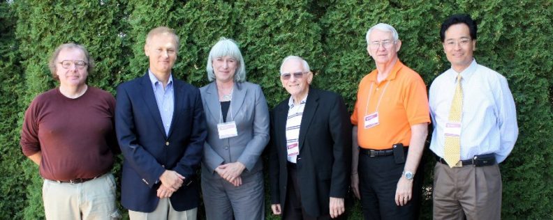 Photographed at the top of the page are five of six SAC members, and the DOE representative: William Hayes (SAC), Herman Gibb (SAC), Kathryn Meier (SAC), Robert Bistline (SAC), Richard Toohey (SAC), and Joey Zhou (DOE).
